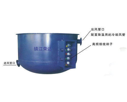 該加熱裝置結(jié)構(gòu)形式配備了降風管,對一般反應釜膽內(nèi)無法安裝蛇管降溫時而專門設計的加熱結(jié)構(gòu)形式,在加熱裝置外部上、下各安裝一對進出風口,通過鼓風機將室外空氣抽進到加熱裝置內(nèi),再通過出風口將加熱裝置內(nèi)部熱量排到室外去,可根據(jù)物料所需的降溫速度配套相應功率的鼓風機和風管口徑,其降溫形式既起到降溫效果又起到防止過熱保護搪瓷的作用。